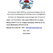 Vintertouren 2025–2026 avslutas söndagen den 15 mars med prisutdelning och gemensam förtäring i form av smörgåstårta.