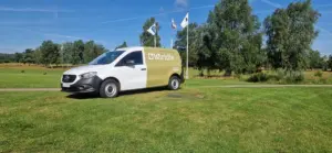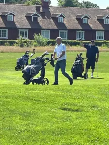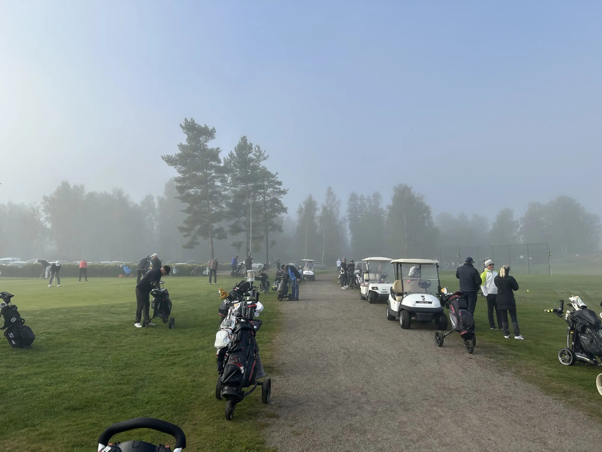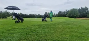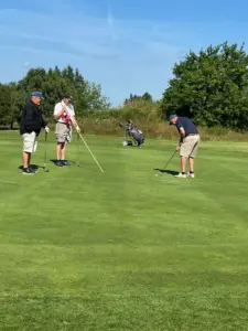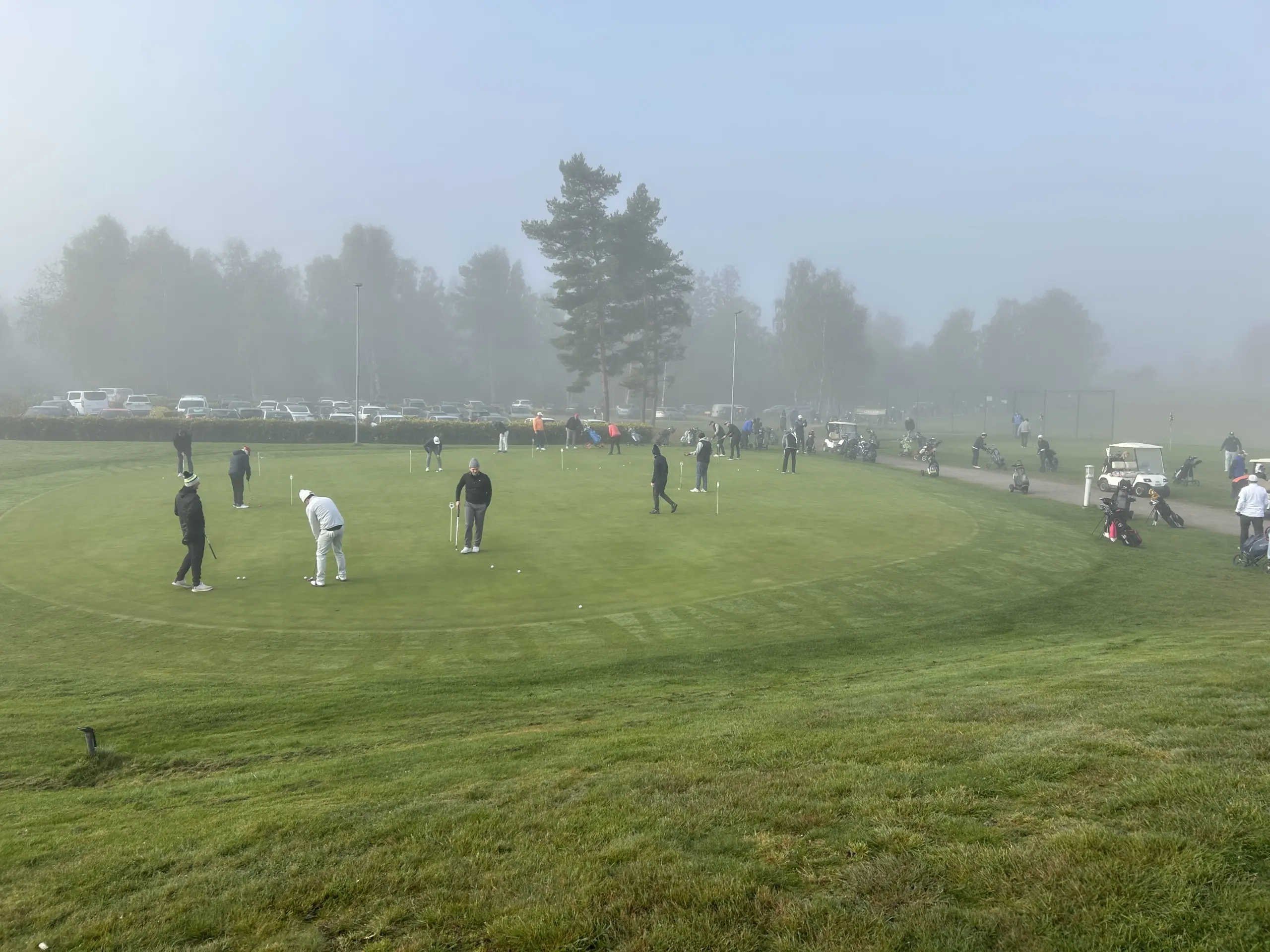 Vi hade flyt med vädret idag, denna vecka har speglats av frost och försenade starter, men idag kom greenkeeper Dan ut i tid och kunde klippa våra fina greener så vi kunde komma igång i tid.