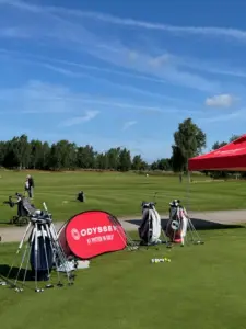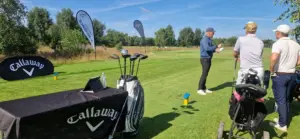 På övnings greenen stod JP från Callaway och visade nyheter inom putters.
